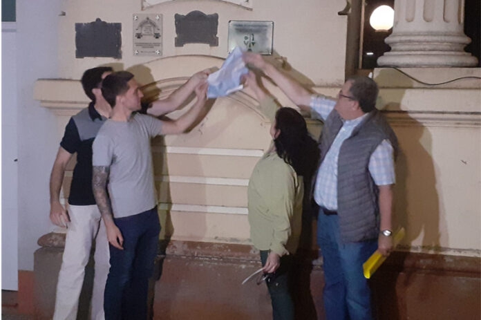 En la tarde noche de este jueves integrantes de la Sociedad Italiana y el Concejo de Sastre descubrieron la placa que declara Patrimonio Cultural Intangible a dicho idioma.