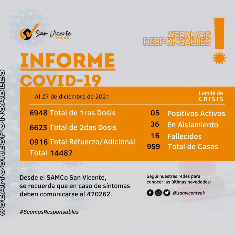 Informamos 4 nuevos casos positivos. De esta manera contamos con 5 positivos activos en total y 36 son las personas en aislamiento por prevención.