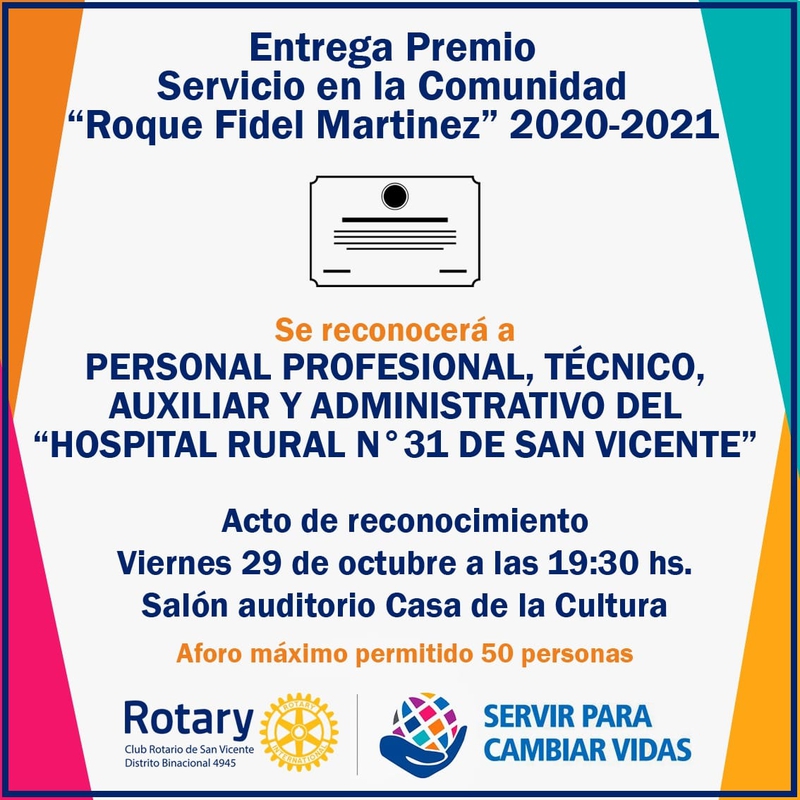 El pasado viernes, el Rotary Club de San Vicente, hizo entrega de su tradicional premio de todos los años a todo el personal de salud del Hospital Rural N°31 de la localidad.