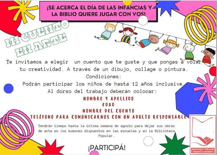 Se llama "Mi Cuento en Arte" y lo organiza la Biblioteca Popular "Mariano Moreno".