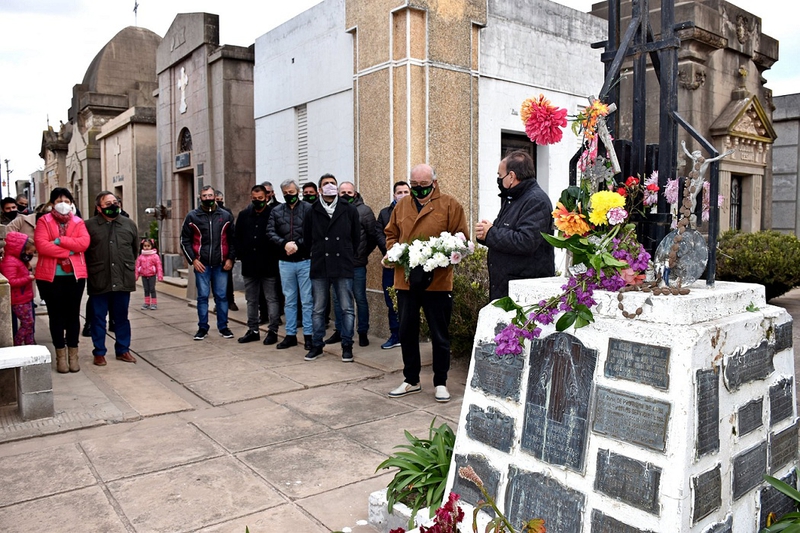 Domingo 27 de junio y a las 17 horas, dirigentes y empleados de la institución verde y blanca se acercaron al cementerio local para realizar una ofrenda floral,