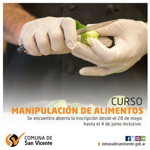 El Área de Seguridad Alimentaria informa que, se encuentra abierta la inscripción desde el 28 de mayo hasta el 4 de junio inclusive para el curso de manipulación de alimentos.