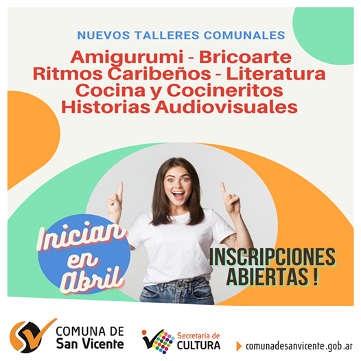 Amigurumi - Bricoarte - Ritmos Caribeños - Literatura - Cocina - Cocineritos - Historias Audiovisuales. Inscripciones Abiertas - Inician en Abril.