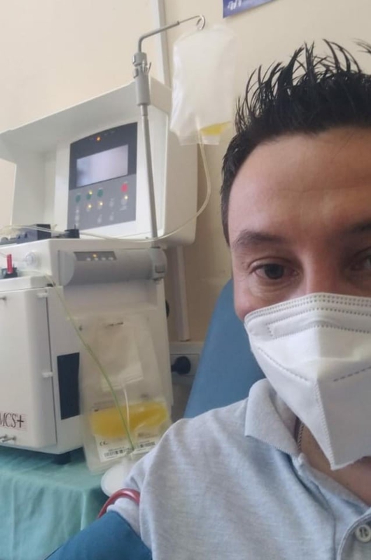 Se trata de Lisandro Villalba, que trabaja como chofer de la Ambulancia de la Comuna de San Vicente , hoy en la ciudad de Rafaela , se produjo el momento en el que donó plasma.