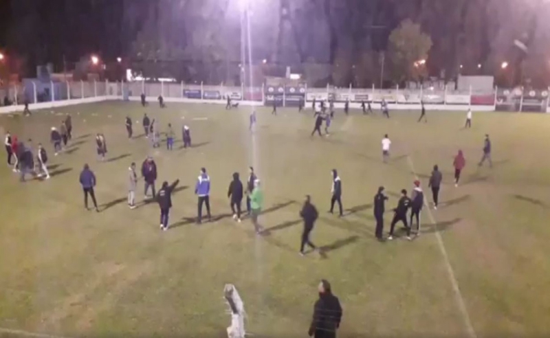 En la noche de este lunes, una vez finalizado el partido entre Peñarol y Ben Hur de Rafaela en Villa Rosas, simpatizantes de ambas parcialidades invadieron el campo de juego para enfrentarse a golpes.