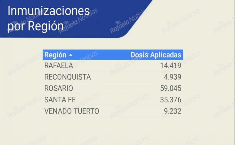 Esto representa el 21,13 por ciento de la población objetivo. En la región Rafaela (que abarca 3 departamentos) las dosis colocadas fueron 14.419.