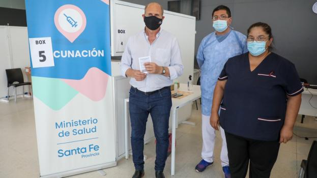 El mandatario santafesino asistió a su turno en el Cemafe donde recibió la primera dosis de Sputnik V.