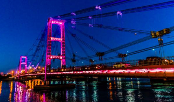 La escena contempla un show dinámico de dos minutos con efectos en celeste y blanco y bandera pasante sobre tablero, que se repetirá cada 15 minutos. Luego, el puente queda con una escena estática de la Bandera Argentina.