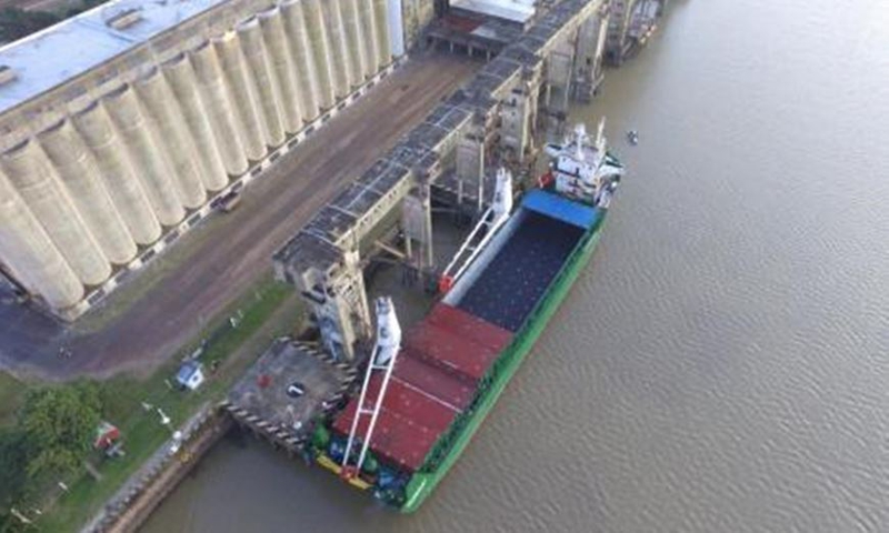 Se trata de una embarcación que cargará maíz con destino al Puerto de Montevideo. El ingreso además se dió en circunstancias históricas de bajante en el río Paraná.