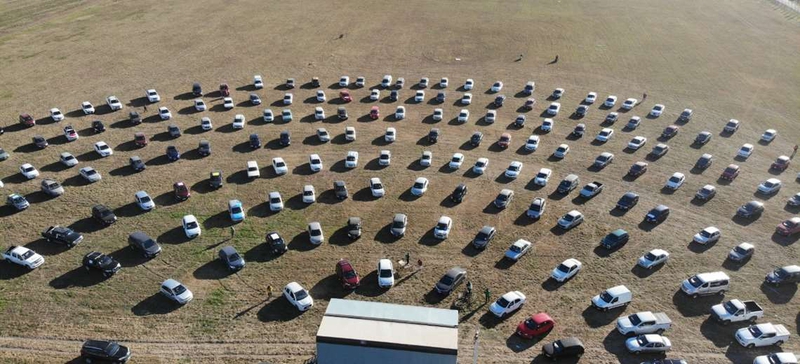 La comunidad de la Iglesia Redentor volvió a desafiar a Perotti este domingo y los fieles se reunieron a celebrar misa. La concurrencia fue a través de más de 200 vehículos.