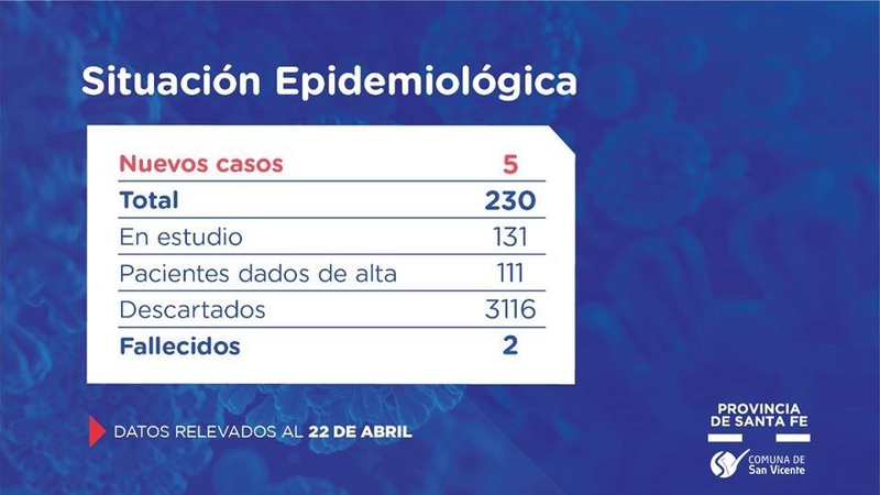 Fueron 2 en San Lorenzo, 1 en Fray Luis Beltrán, 1 en Granadero Baigorria, 1 en Oliveros y 1 en Venado Tuerto. Dio negativo el de Sunchales.