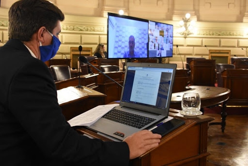 Por primera vez, la Cámara Alta realizó una telesesión a través de una plataforma informática. se dio media sanción al mensaje que autoriza al Gobernador a ausentarse del país por razones de gobierno durante el 2020.