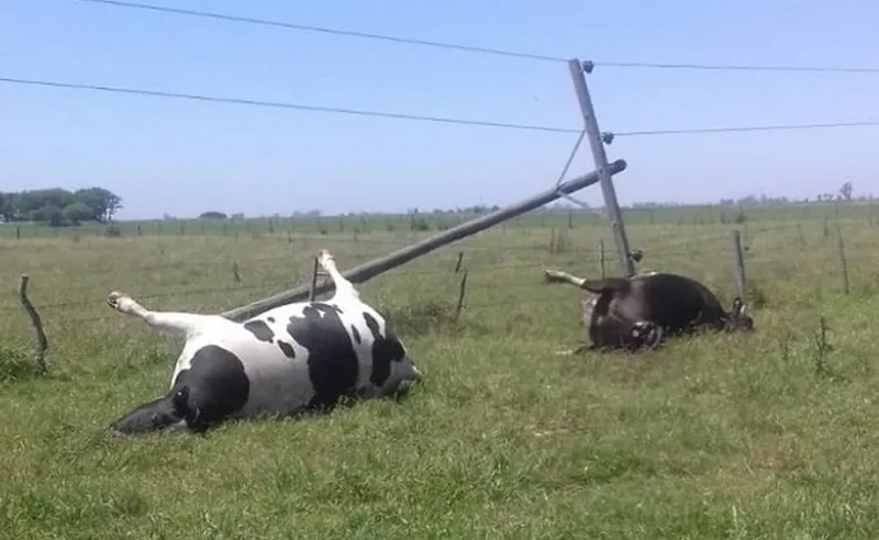 Fue en la zona rural de Garibaldi cuando uno de los trabajadores se encontró con el poste sobre los animales, tratándose de dos vacas Holando Argentino. El mismo habría caído producto del viento