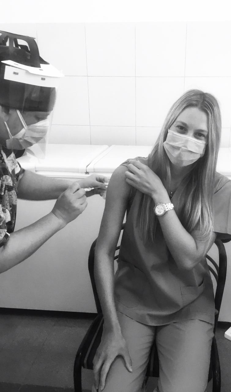 La sanvicentina Lali Trossero trabaja en un centro médico privado de la ciudad de Rafaela y hace diagnóstico por imagen, ella se coloco la vacuna y está muy contenta.