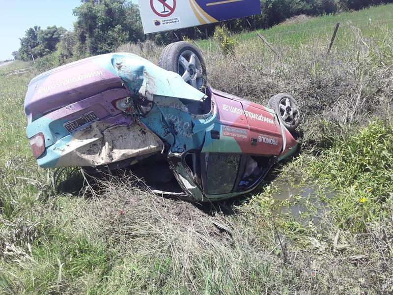 Pasado el mediodía un Chevrolet Corsa por causas que se investigan perdió el control sobre la cinta asfáltica a la altura del km 14 de la autovía 19 y volcó a la banquina. Sus ocupantes resultados con heridas leves.
