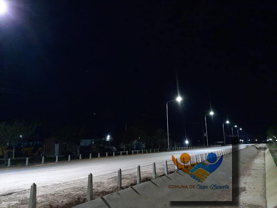 Parcialmente la obra de alumbrado público en la Ruta 63 se pone en marcha para dar un diferente impacto visual .