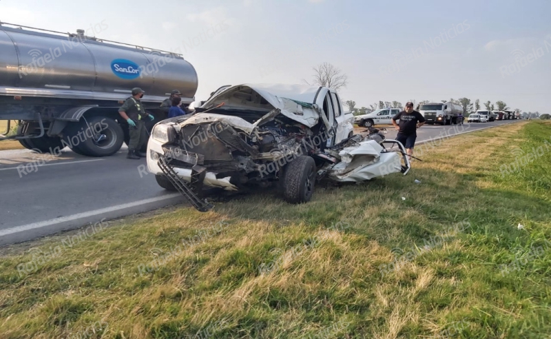 Un impactante choque se registró en la tarde de éste sábado sobre el kilómetro 228 de la Ruta Nacional 34. Una camioneta quedó completamente destruída sobre la banquina tras chocar de trás a un camión.