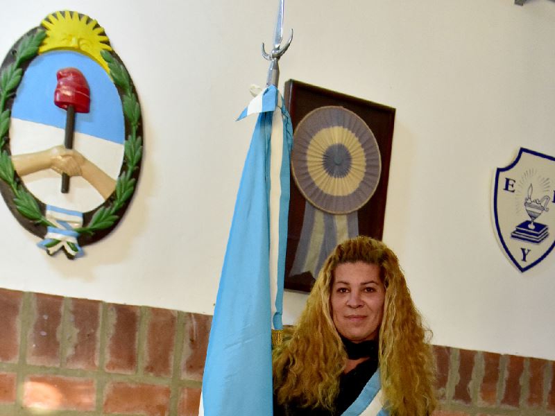 Paula Moyano es la primera chica transgénero en portar la enseña argentina de la escuela nocturna J. B. Iturraspe, siendo ejemplo de compromiso y lucha por pertenecer y superar cualquier obstáculo.