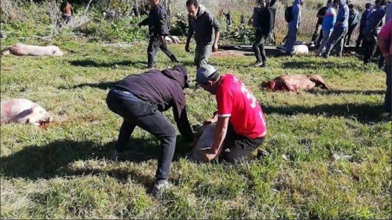 Sucedió en la ruta 2, a la altura de la localidad bonaerense de Coronel Vidal. Hubo unos 20 detenidos por el robo de los cerdos. Las increíbles imágenes