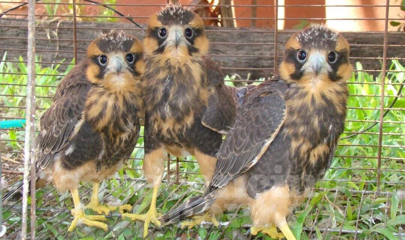 El guardafauna Juan Martín Mastropaolo rescató a tres pichones de halcón plomizo, una especie que según relató, cada vez se ve menos.