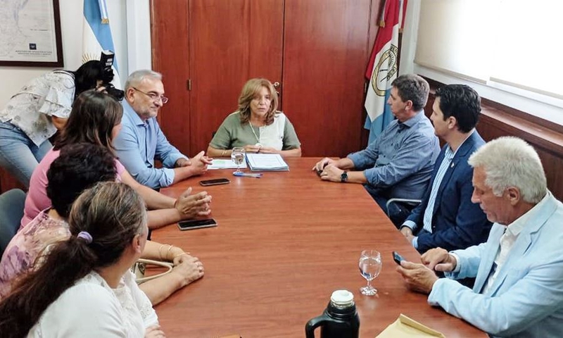La ministra de Infraestructura, Servicios Públicos y Hábitat, Silvina Frana, recibió al senador Calvo y autoridades municipales y comunales para efectivizar una nueva firma de convenios con comunas y municipios del Departamento.